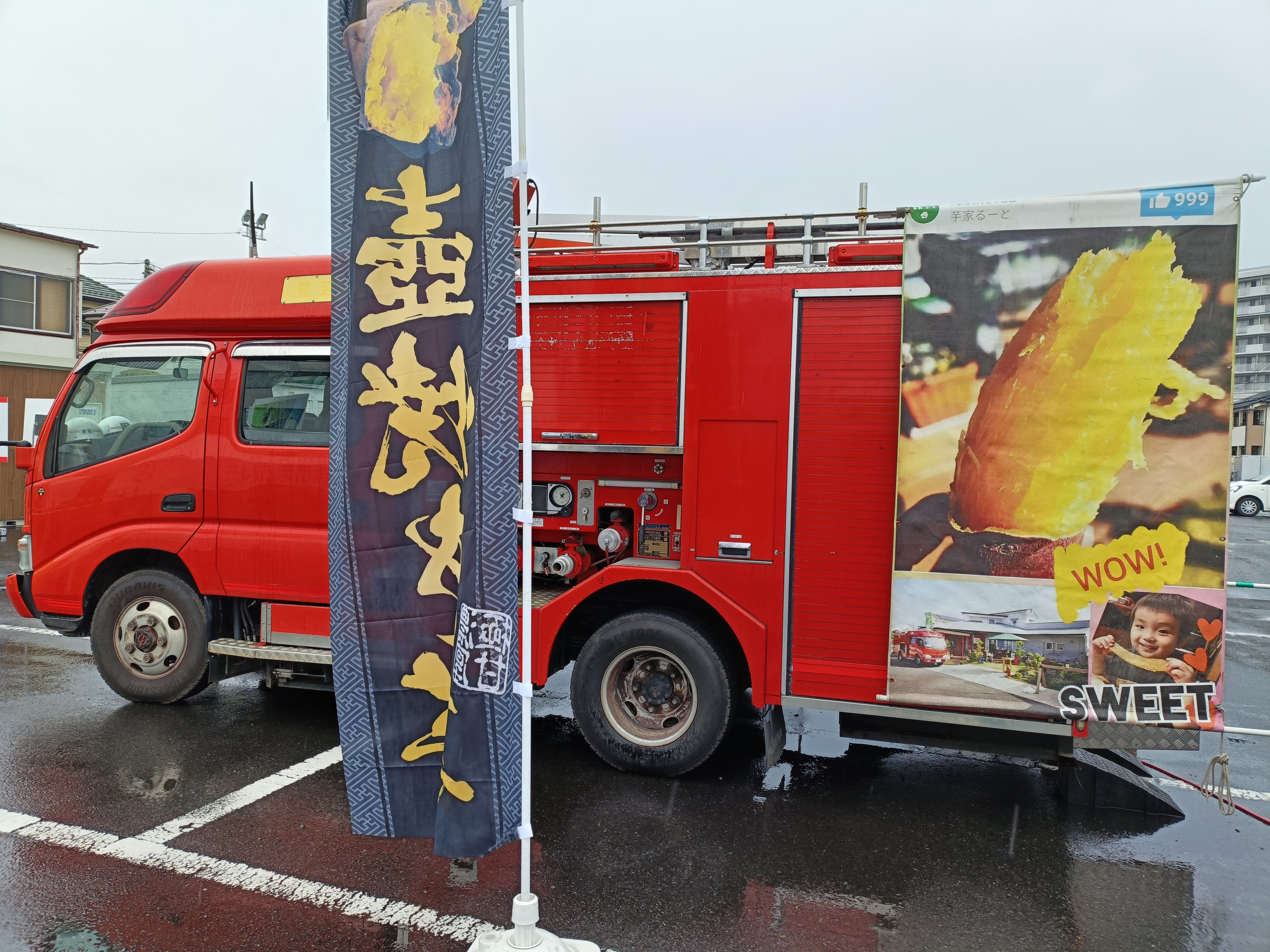 消防車の裏にはアンガールズの山根さんのサインがありました♪
