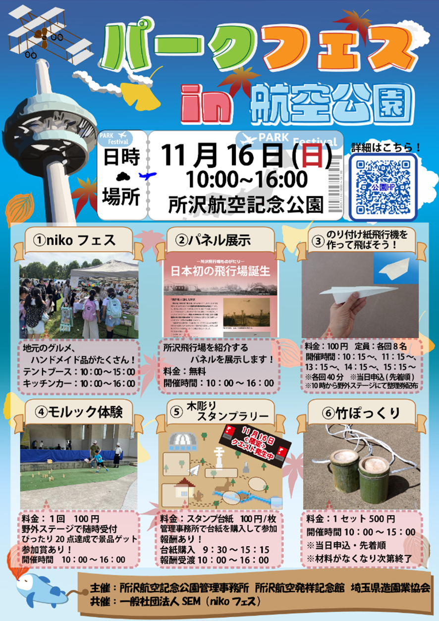 こんにちは 所沢店 大城です。 所沢航空記念公園にて、明日11/16イベントが開催されます♪ ワークショップでは、300種類以上のデコパーツ、蓄光ビーズ、不思議な感触のジェルを使って、暗闇で光る不思議なアクアリウムが作ったり、好きなビーズを選んでキッズイヤリング(1ペア)やキーホルダー作りなどが体験できます。 食品サンプル作りやクリスマス・お正月飾りも作ることができ盛沢山の内容です。アクセサリーの販売もあるようです。