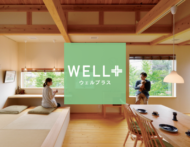お住まいになられる方の健康のために、国産無垢の木にこだわり、外張り断熱・冷暖房付き全館空調による、四季を通して快適な室内温度のバリアフリーを実現した住まい。
