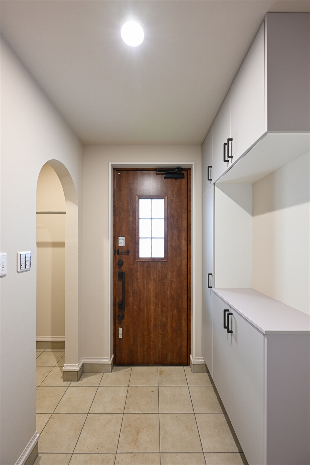アーチ開口の先にSIC。モノが自然と戻る、整う玄関。
