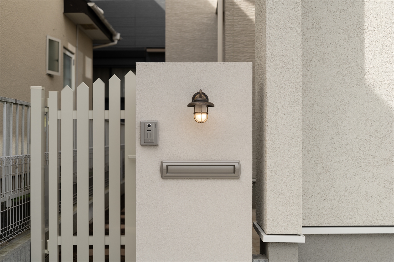 温かみのある門灯とゲート。毎日の出入りに安心感とリズムを。